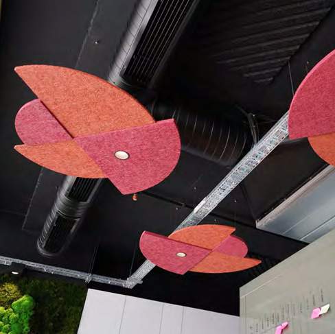 Trio Cloud ve Quarter Cloud ürünlerinin her ikisi de tavan tipi akustik yutucu paneller olarak tasarlanmıştır.